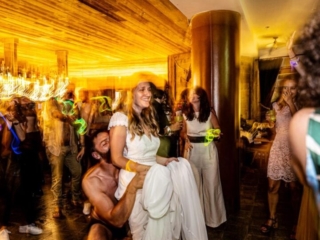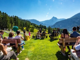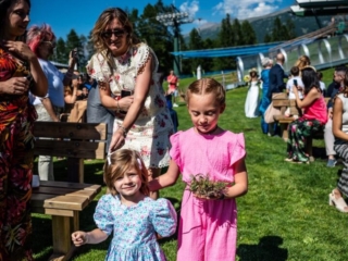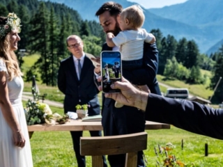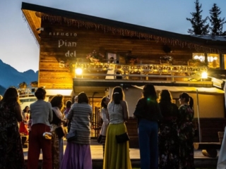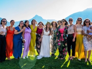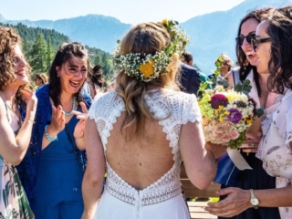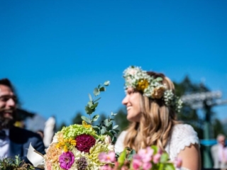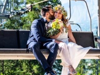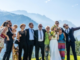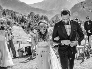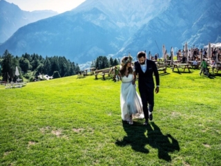 I love unconventional weddings! Elena and Manuel have chosen a wedding by mountains! It was great! We started from Bardonecchia and by chairlift we all arrived in Pian del Sole. The ceremony and reception were magnificent, surrounded by the mountains and in a combination of simplicity, elegance, crazy party and joy.  Elena chose a romantic White Le Spose  dress that was perfect for their natural style. The perfect floral arrangement and the original flower cord are the work of the Fratelli Gramaglia nursery. A colorful and fun marriage with the splendid cuisine of the Restaurant Pian del Sole