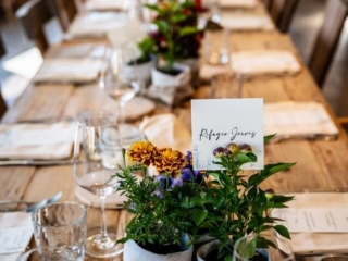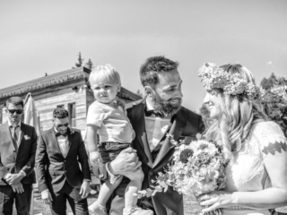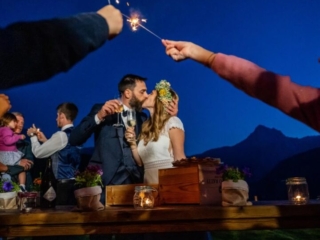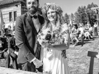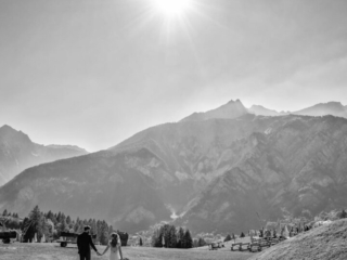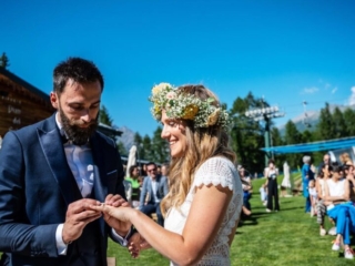 Siamo partiti da Bardonecchia e in seggiovia siamo arrivati tutti a Pian del Sole. La cerimonia e il ricevimento sono stati magnifici, circondati dalle montagne e in un connubio di semplicità, eleganza, festa matta e gioia.